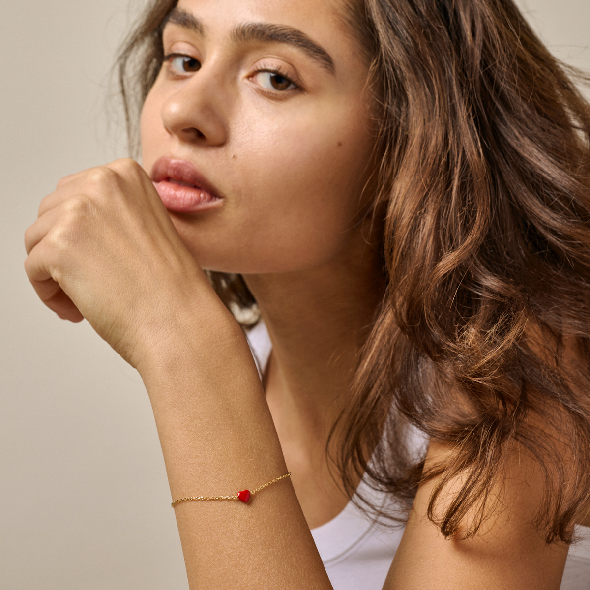 Med sit enkle, men samtidig dybt meningsfulde design, fungerer armbåndet som en konstant påmindelse om de ting, der virkelig betyder noget. Det røde hjerte på armbåndet tilføjer en varm og passioneret detalje, der giver smykket et ekstra lag af betydning.