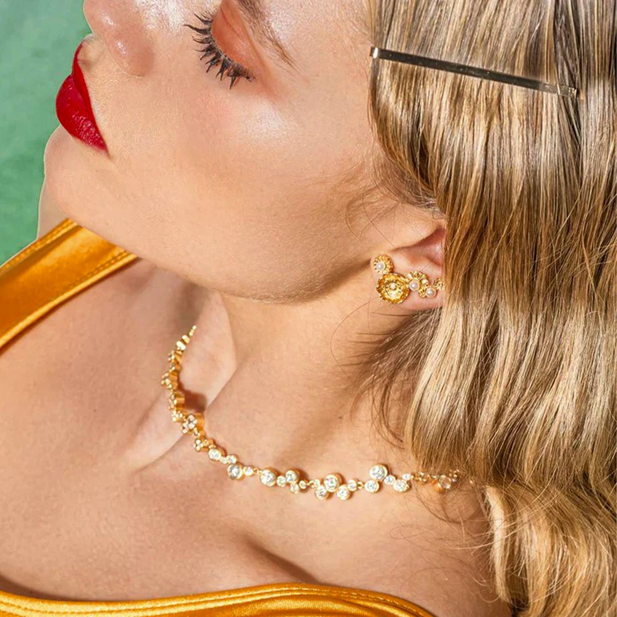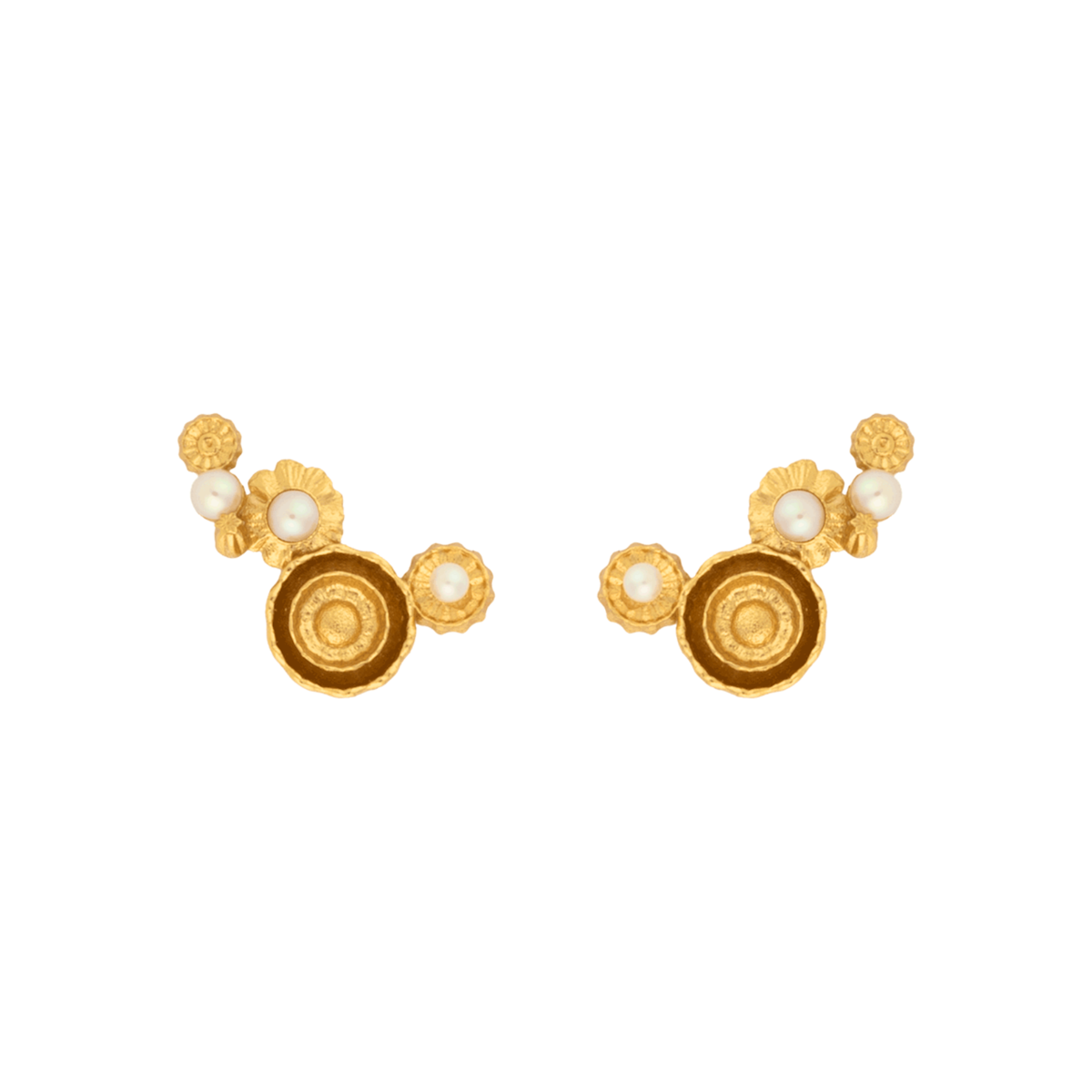 De smukke og unikke ørestikkere fra House Of Vincent. Ørestikkerne bærer på en ranke af vilde blomster og hvide ferskvandsperler, som smyger sig langs øret i en betagende blomsterformation.