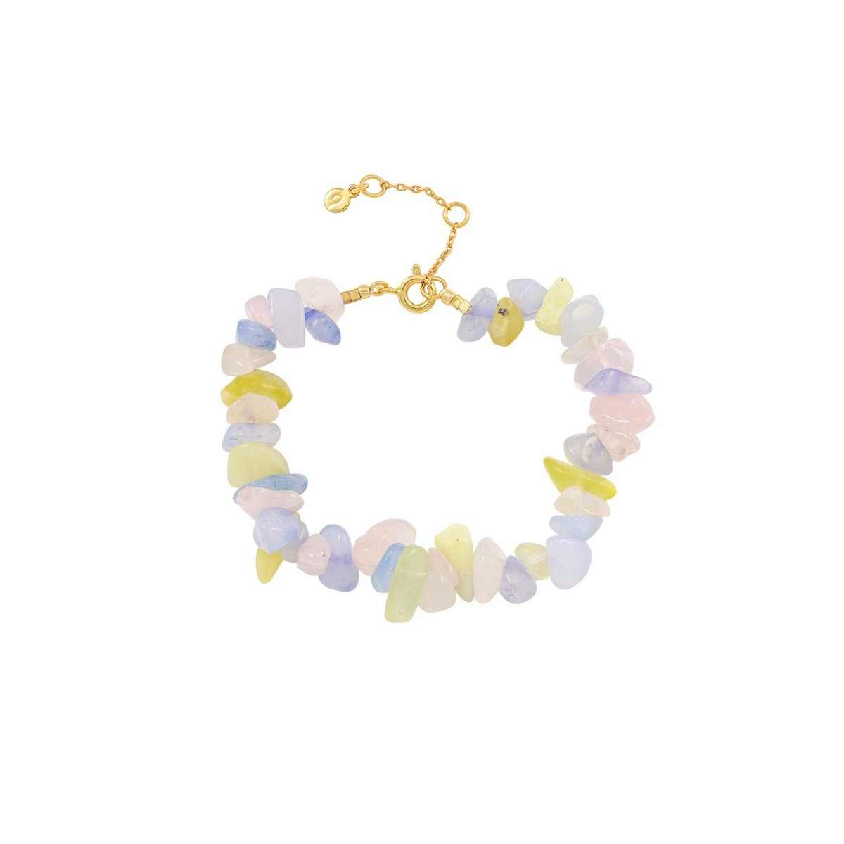 Bring sommeren tættere på med de fine pastelfarver. Håndlavet i 18 karat forgyldt sterlingsølv og glassten. Længde: 16 cm + 3 cm fleksibel justering.