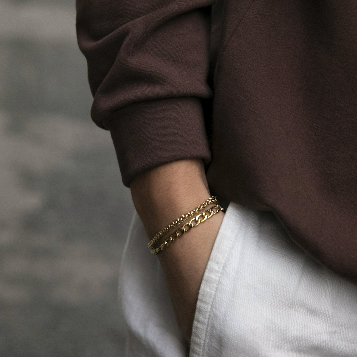Neotřelý a chladný náramek z pancéřového řetězu. Ideální pro samostatný vzhled nebo pro kombinaci s dalšími náramky, abyste získali osobitější a robustnější vzhled.