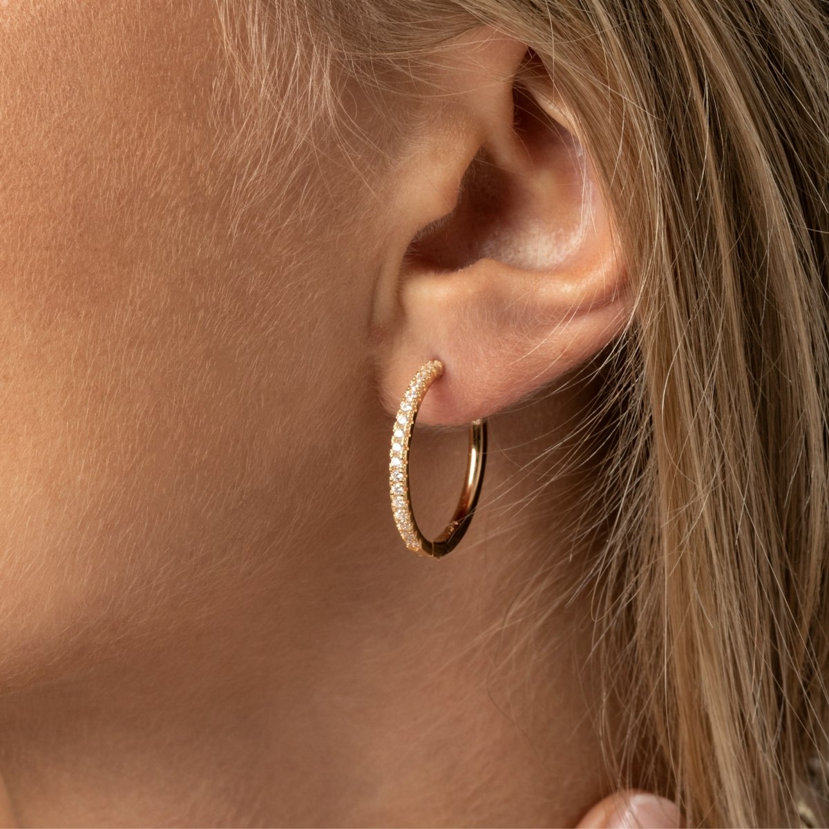 První verze je vyrobena ze stříbra o ryzosti 925/1000 pokoveného 18 kt zlatem pro hřejivý a sofistikovaný vzhled. Náušnice mají leštěný povrch a jsou krásně ručně osazeny fasetovanými bílými zirkony, které odrážejí světlo a vytvářejí jemný, ale působivý vzhled.