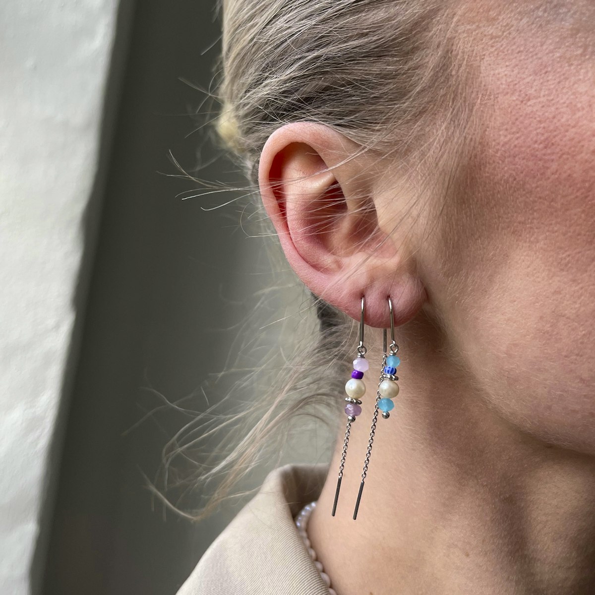 Blå Simona øreringe Øreringe fremstillet i 18 karat forgyldt sterlingsølv eller sterlingsølv med ferskvandsperle, forgyldt blomsterperle og krystalperler i nuancer af lyseblå. Simona-kollektionen består af øreringe og armbånd i en farverig udvælgelse af perler. Serien er tilgængelig i både 18-karat forgyldt sterlingsølv eller rhodineret sterlingsølv.