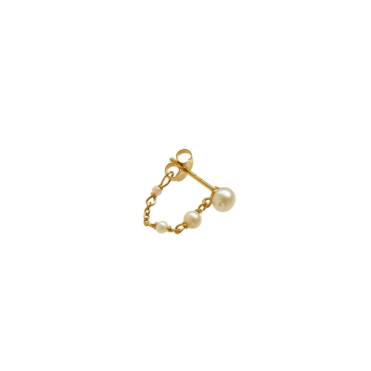 Tyto elegantní a jedinečné perlové náušnice od společnosti STINE A Jewelry jsou ideální volbou pro ty, kteří milují šperky klasického vzhledu, ale přesto vynikají. Náušnice je vyrobena z 18karátového pozlaceného stříbra 925/1000 a zdobí ji malé, jemné sladkovodní perly, které působí žensky a exkluzivně.