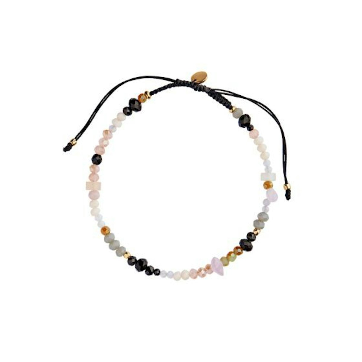 Oplev et vidunderligt håndknyttet armbånd i sort nylon, prydet med de lækreste ædelsten i en smuk kombination af skønne farver. Armbåndet er designet med en nem og justerbar lås, der sikrer en perfekt pasform til ethvert håndled, fra 17 cm til 25 cm.